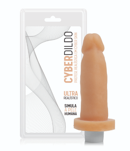 Prótese em Cyber Skin - 14,5x4cm com vibrador multivelocidade a prova d´água