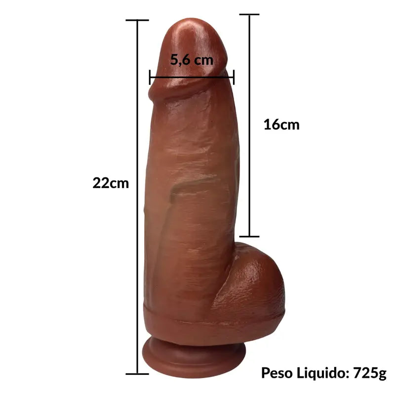 Prótese peniana realística com glande, dupla camada de silicone, veias reais, escroto e ventosa, acompanha controle remoto. Possui função de aquecimento para imitar a temperatura corporal, proporcionando uma experiência mais realista.