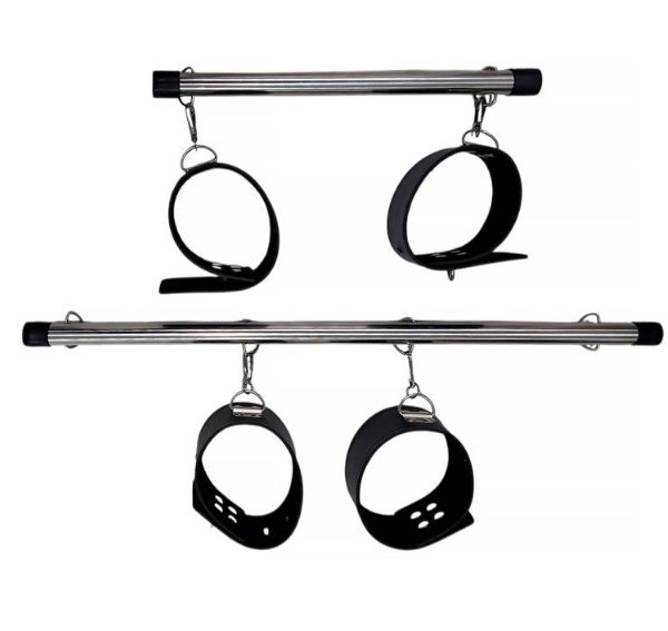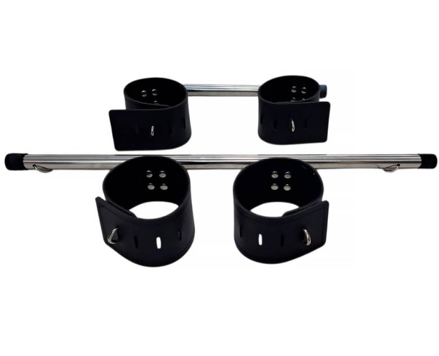 Acompanha quatro algemas em couro sintético de alta qualidade, com acabamento confortável e ajuste regulável para melhor adaptação aos punhos e tornozelos.